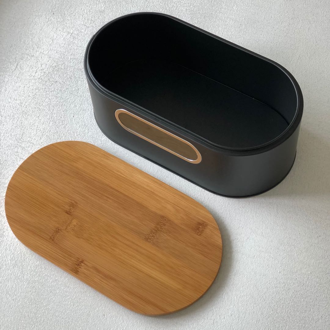 Cette jolie boite à pain noire et bois conservera votre baguette de pain, pain de mie ou brioche et prolongera leur fraicheur sur plusieurs jours pour éviter qu’ils deviennent rassis. Son couvercle en bois peut aussi servir de planche à découper le pain croustillant.